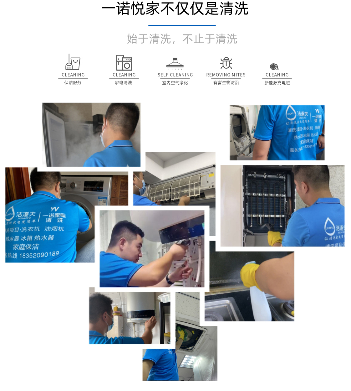 公司经营范围包括:空调、洗衣机、油烟机、热水器、冰箱等家电清洗,空调出风口检测,室内空气质量甲醛检测,室内空气甲醛治理,空气净化除异味,消毒杀菌,新能源汽车充电桩销售、安装、移桩、维修服务,开荒保洁、深度保洁、日常保洁、擦玻璃等保洁服务 ,除苍蝇、蚊子、老鼠、蟑螂等有害生物防治服务。